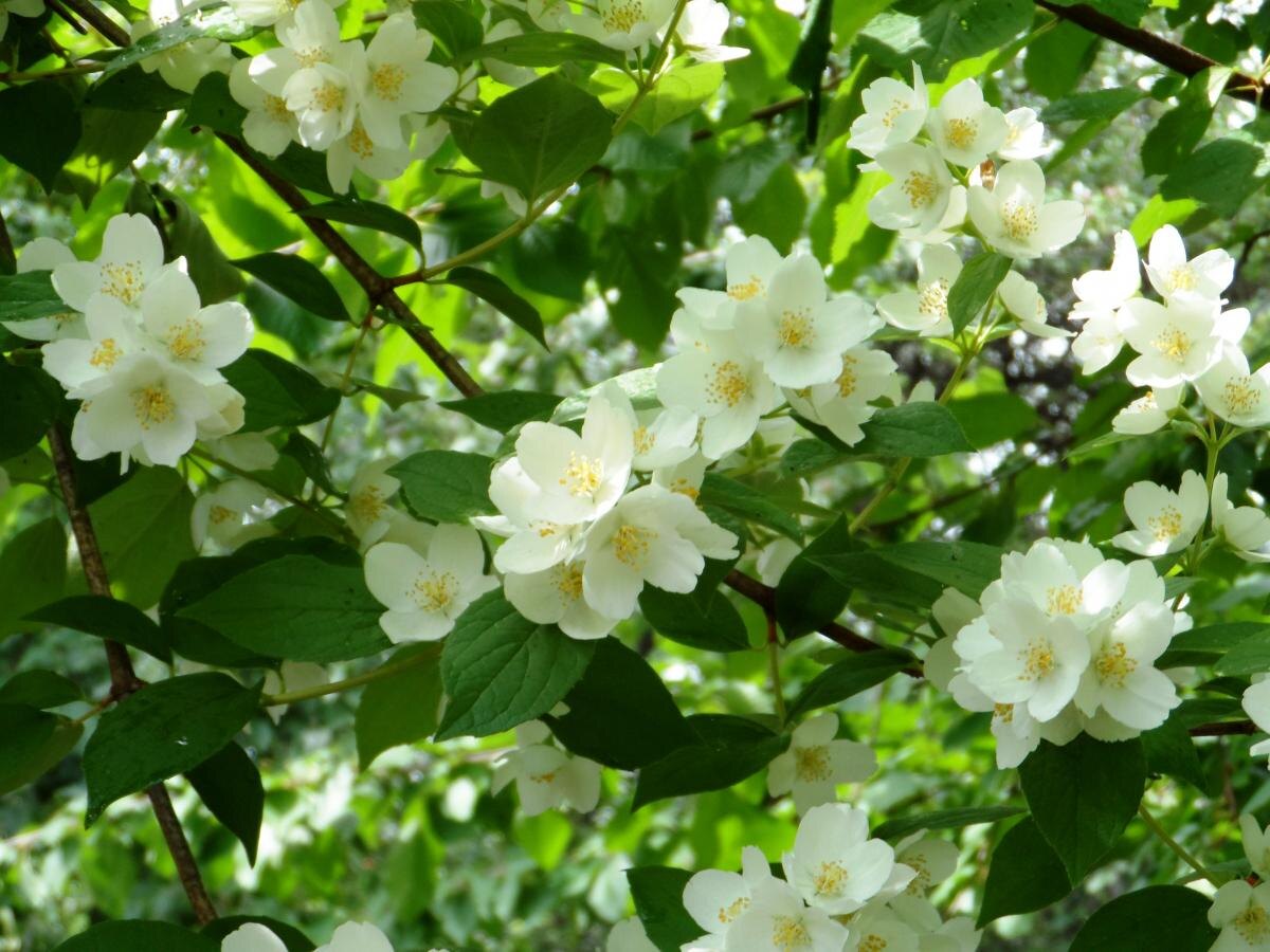 - Китайский жасмин: обильно цветущий вид, который подходит для озеленения, может расти как на солнечных участках, так и в тени.