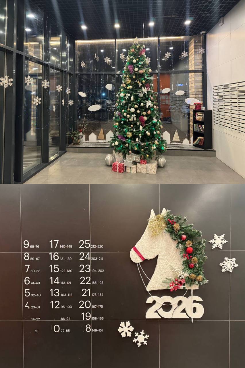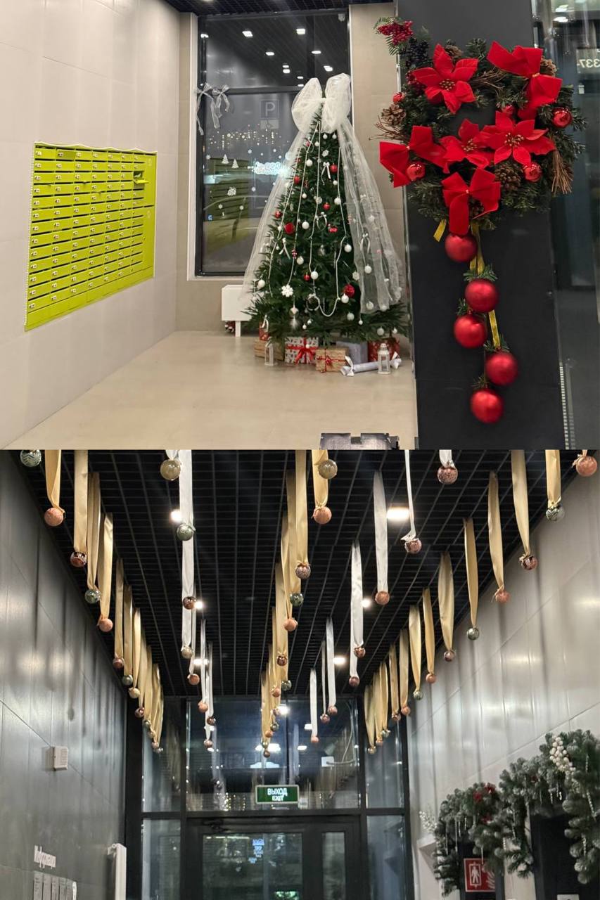 Где-то холлы украсила управляющая компания, а где-то — и сами жильцы. Получилось ну очень атмосферно