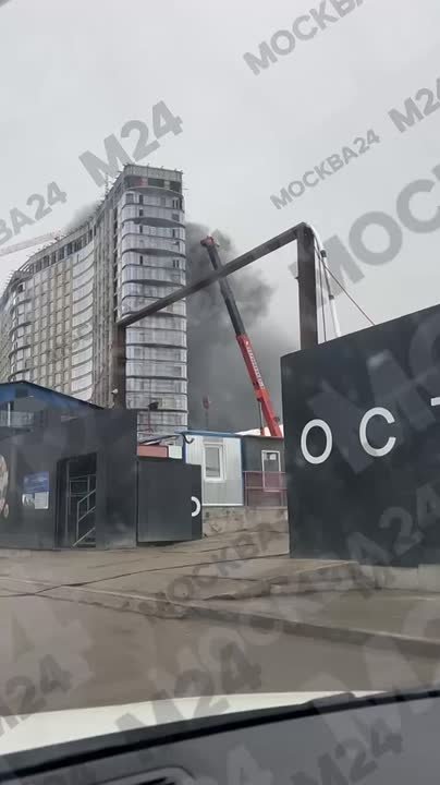 Строящееся здание задымилось на северо-западе Москвы. Над улицей Нижние Мнёвники поднялся столб дыма.