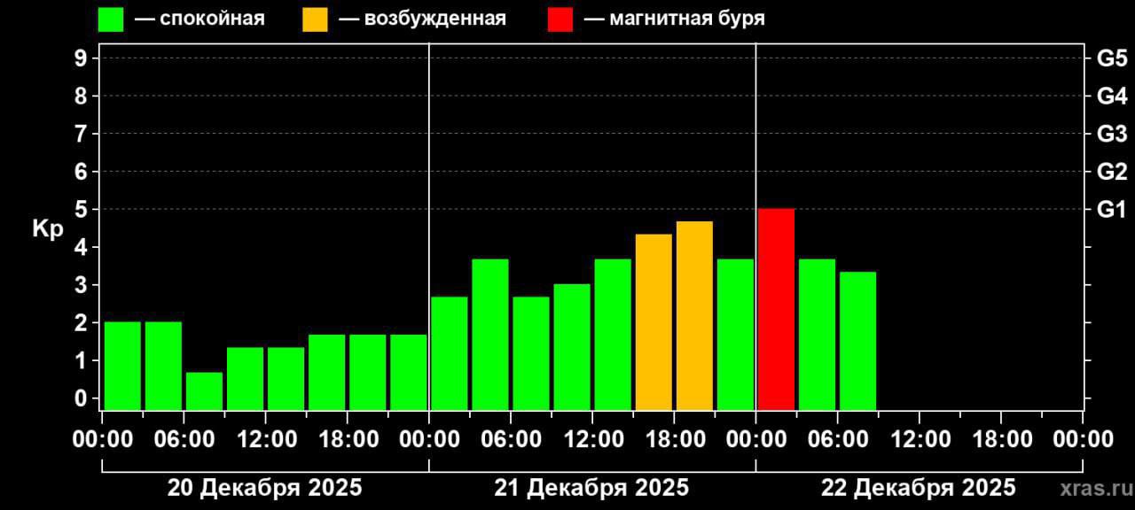 Прогноз: возможны колебания уровня G1–G2, а значит головные боли и скачки давления неизбежны. Метеочувствительные, сочувствуем.