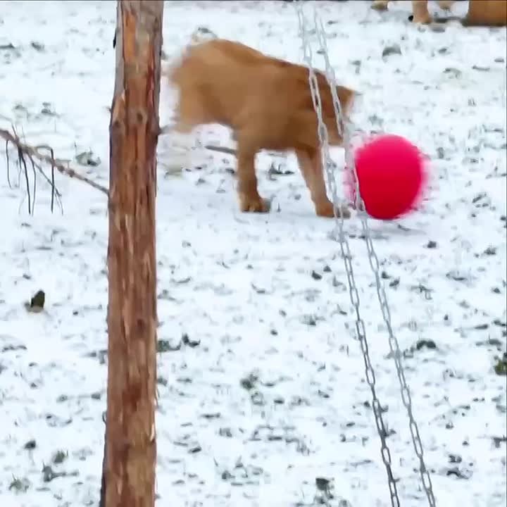 Милота дня: львята из подмосковного парка-приюта осваивают зимний футбол!