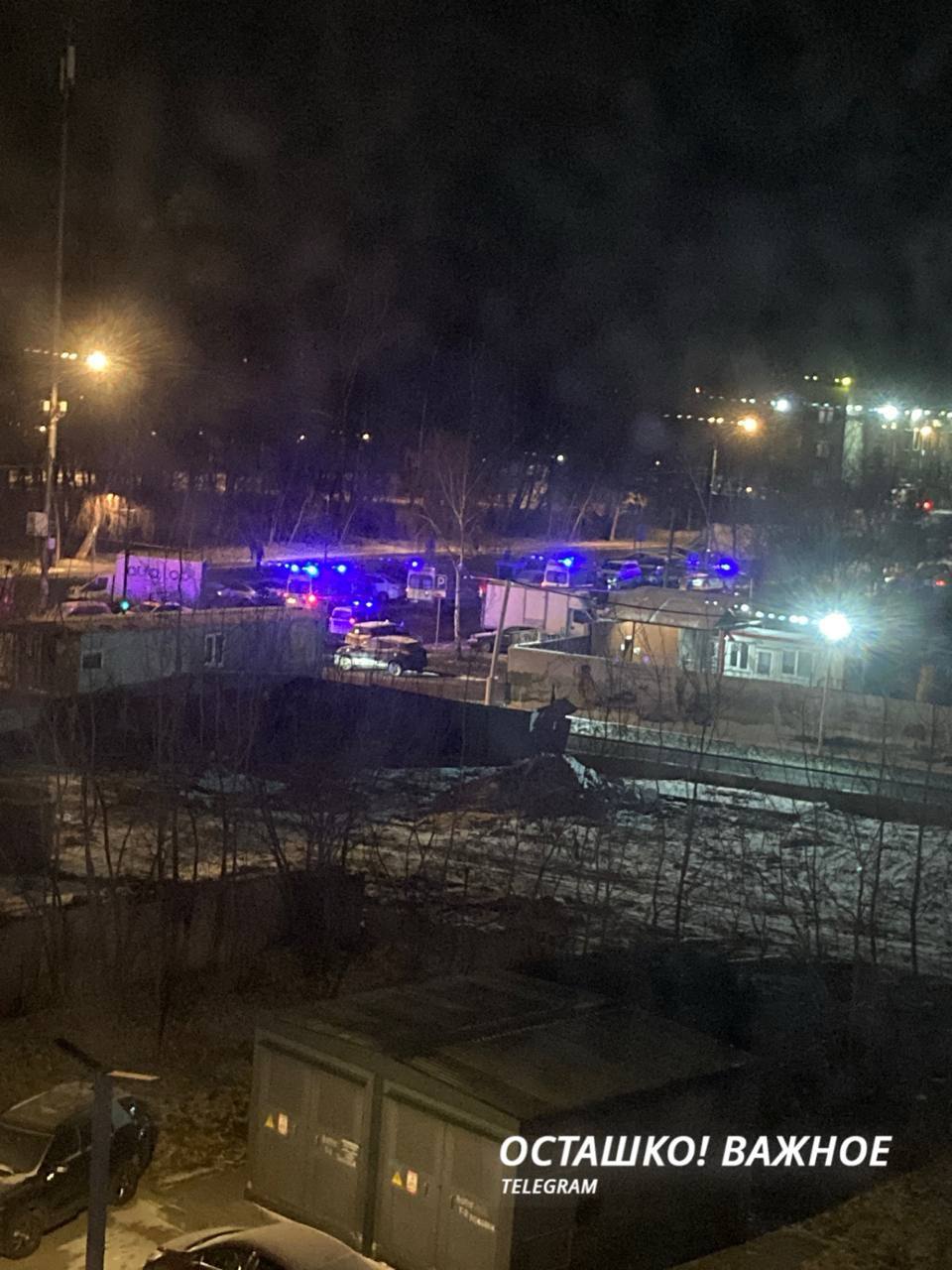 По предварительным данным, один из раненых находится на земле с травмами ног. Территорию оцепили, сообщает Mash.