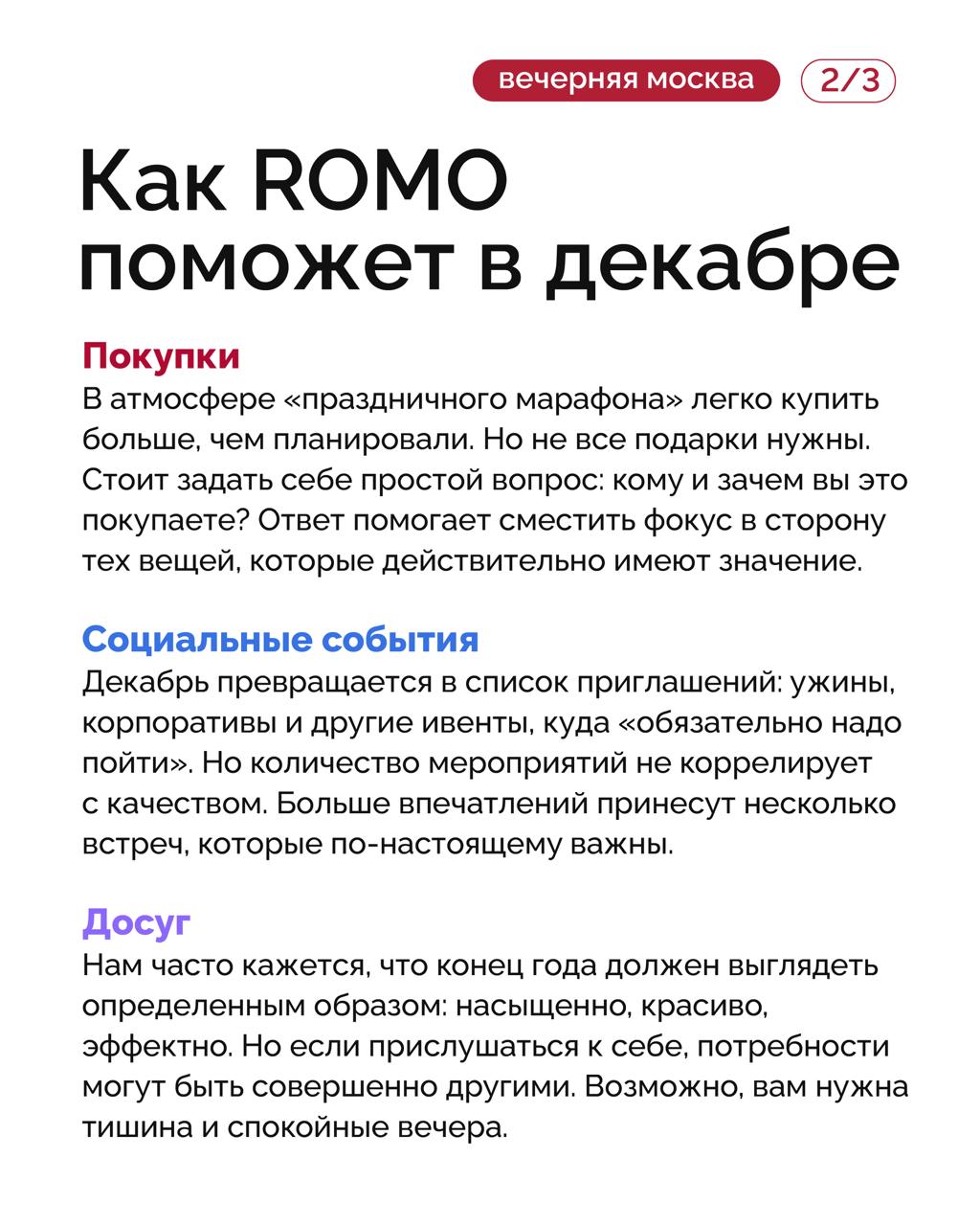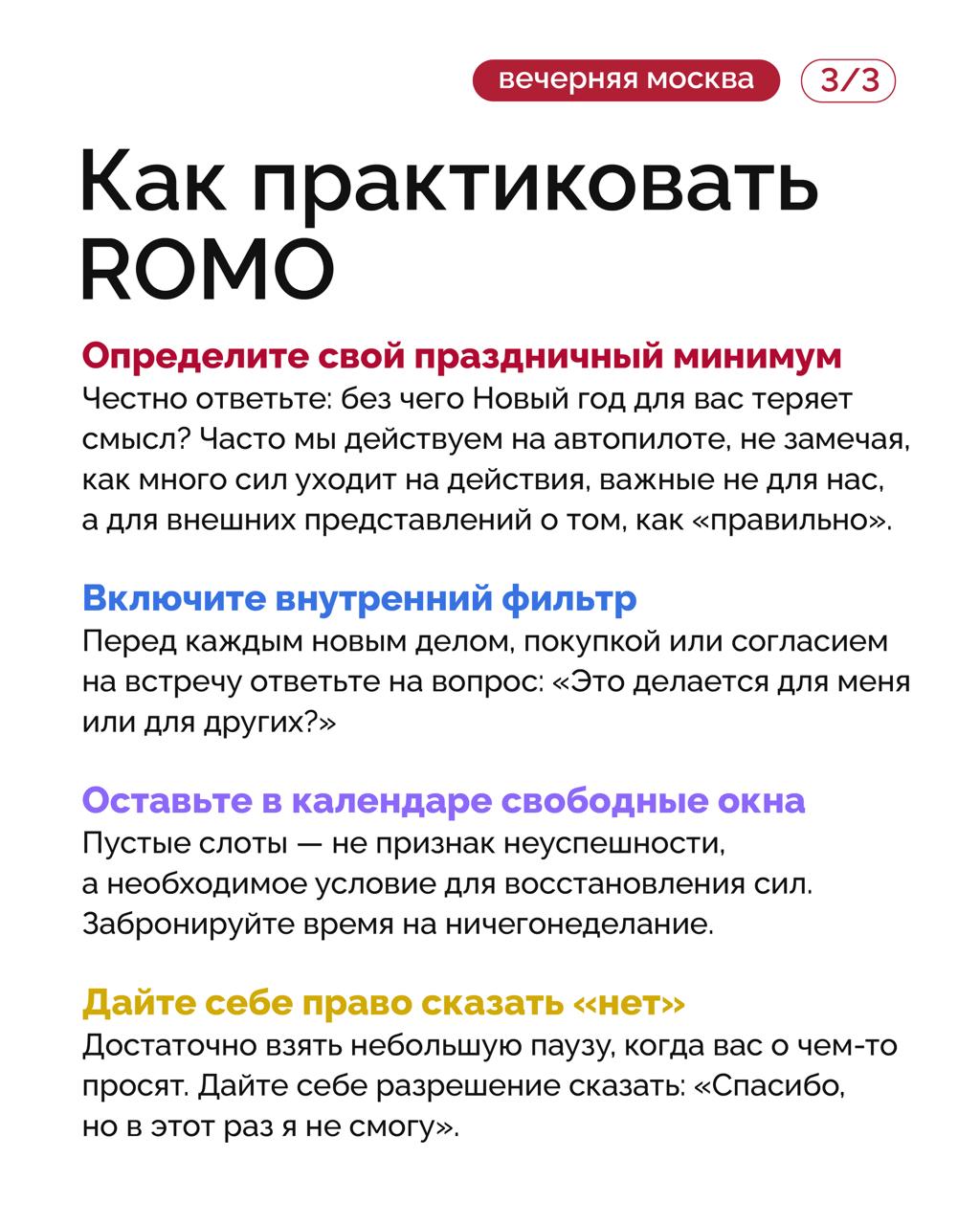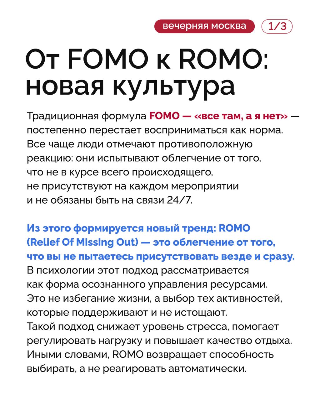 На этом фоне у многих усиливается FOMO (Fear Of Missing Out — синдром упущенной выгоды) — ощущение, что вокруг все живут активнее, продуктивнее и «успевают больше».