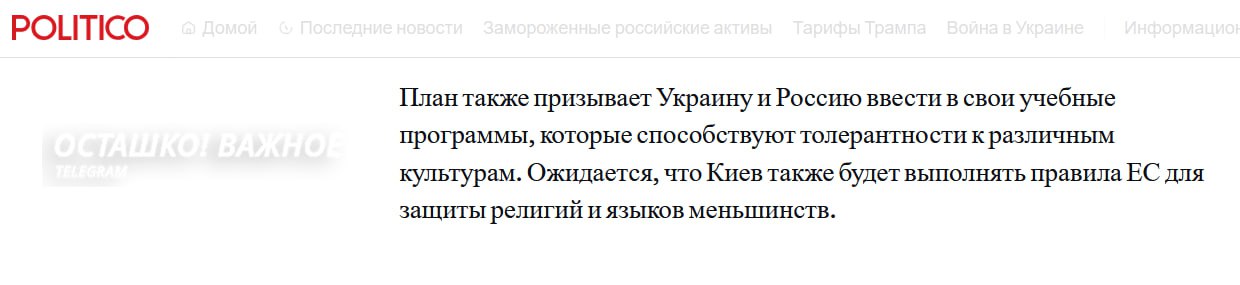 Главарь киевского режима представил мирный план, в котором одним из пунктов призывает Киев и Москву реализовывать образовательные программы, «способствующие толерантности к различным культурам».