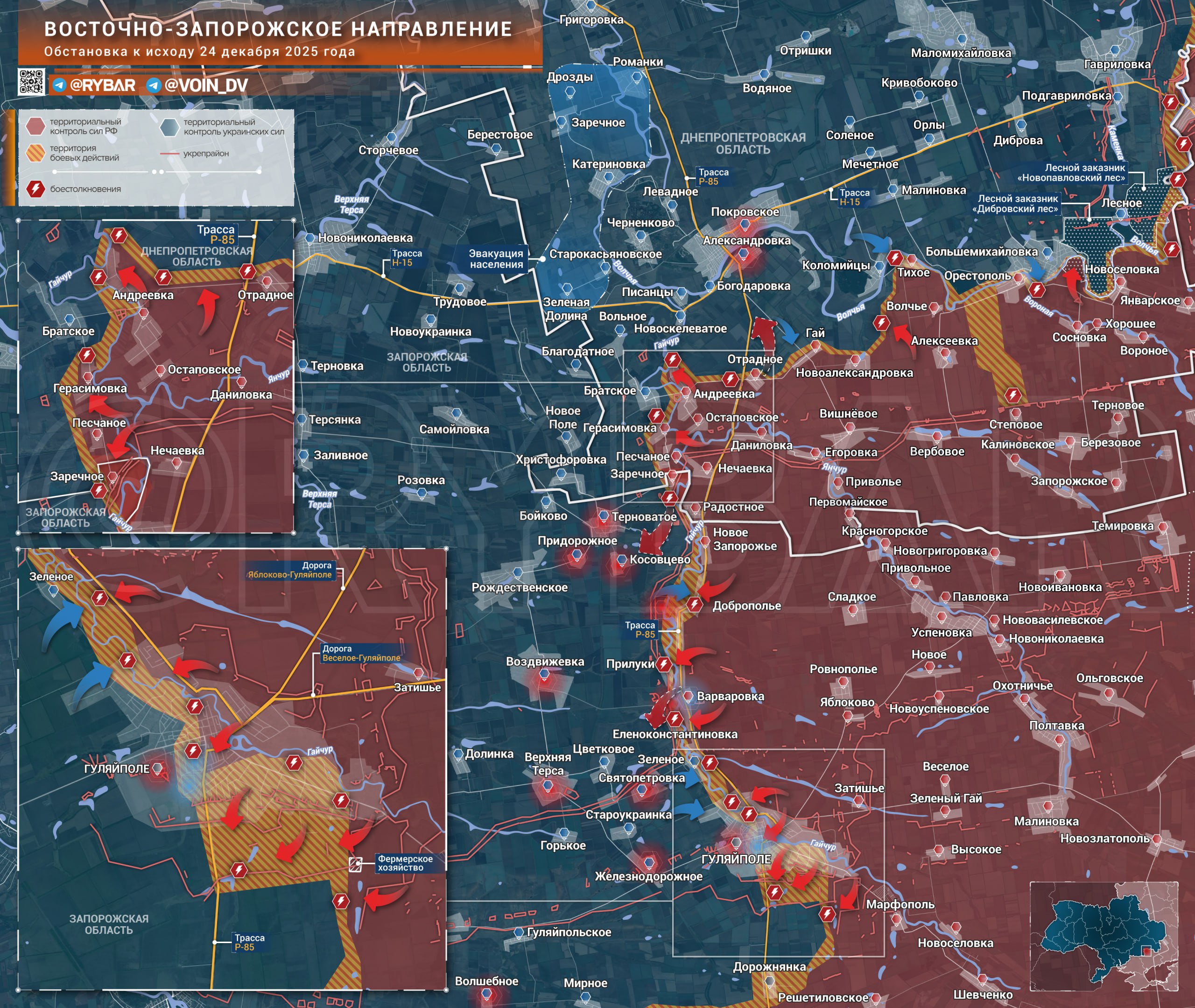 На Восточно-Запорожском направлении бойцы ГВ «Восток» освободили населенный пункт Заречное на северном фланге. Вместе с тем продолжаются бои в центре Гуляйполя.