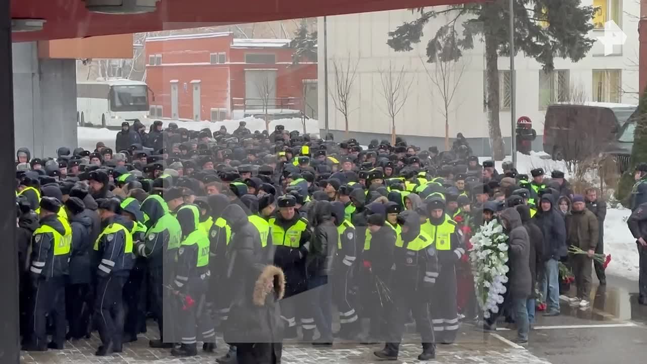 Церемония прощания с двумя сотрудниками ДПС, погибшими во время взрыва, началась в Москве.