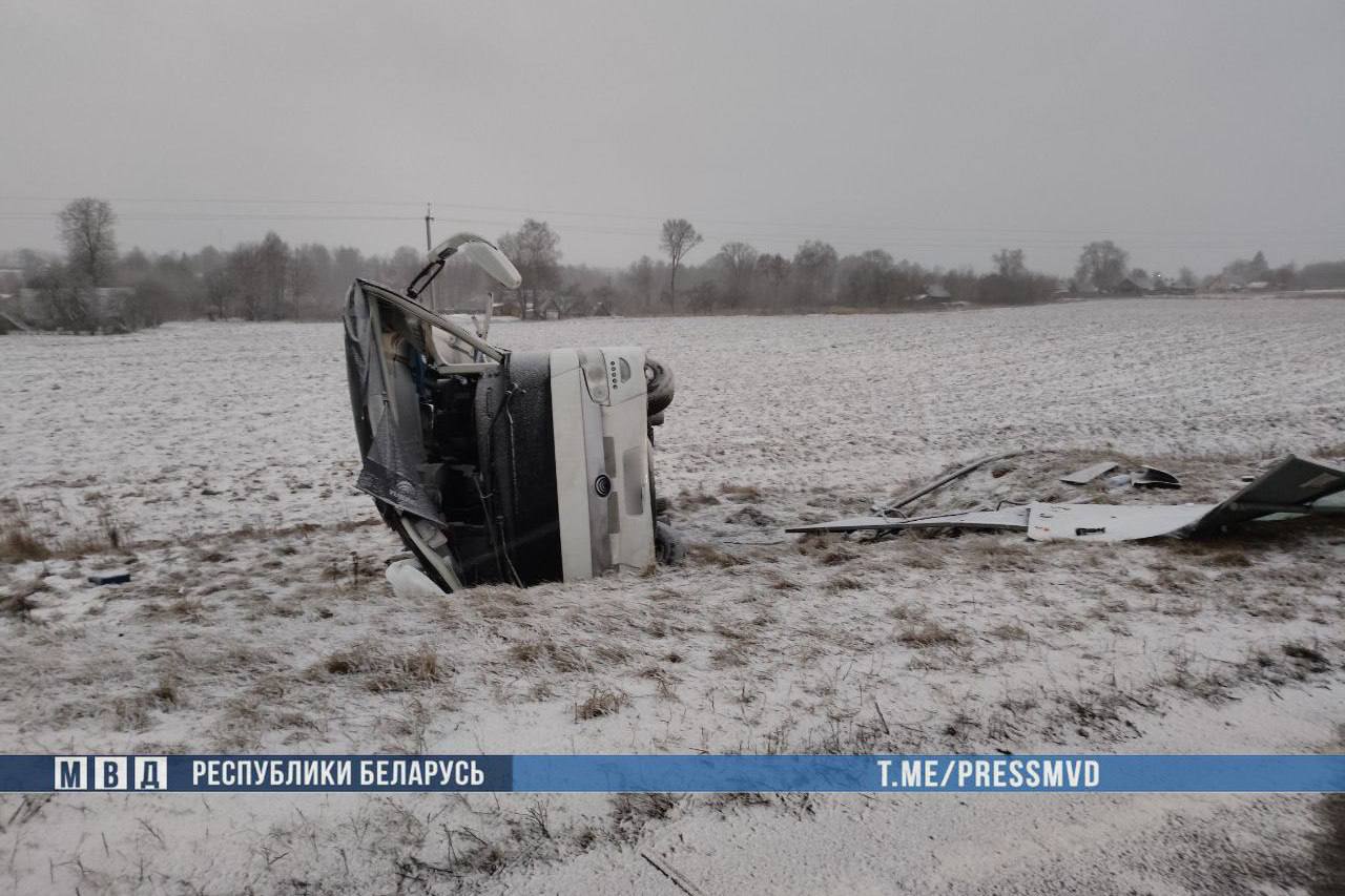 Как рассказали в МВД страны, на трассе недалеко от Минска 43-летний водитель не справился с управлением, из-за чего автобус съехал в кювет и перевернулся.