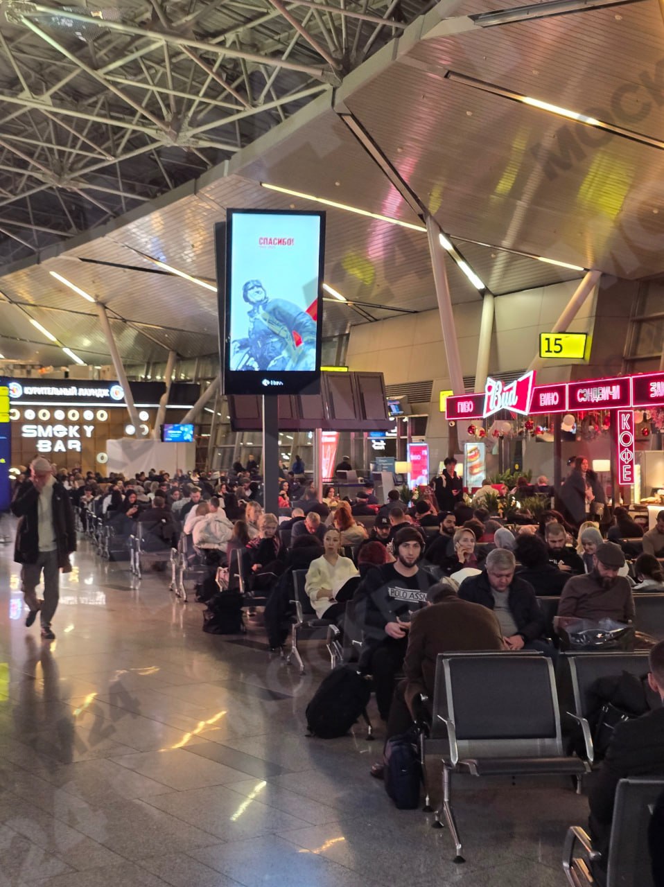 Подписчица делится обстановкой во Внуково: больше двух десятков отменённых и задержанных рейсов, а ещё оочень людно.