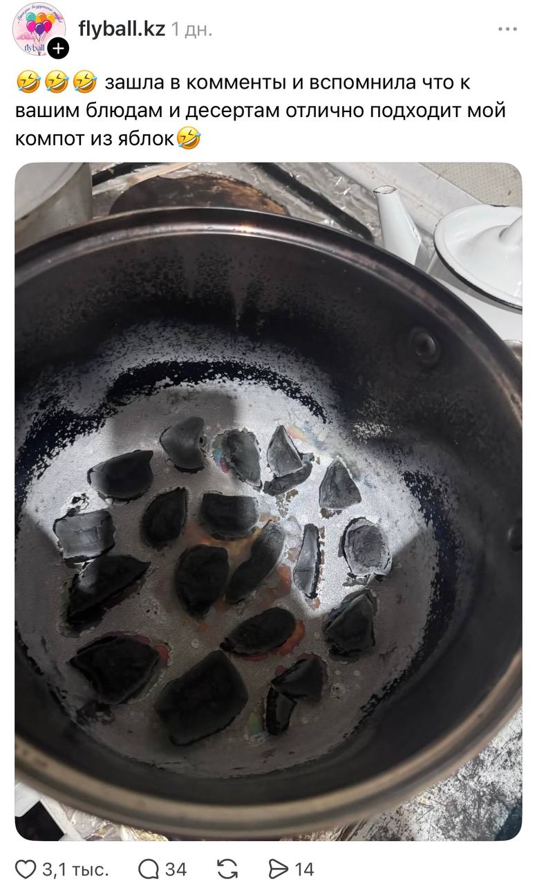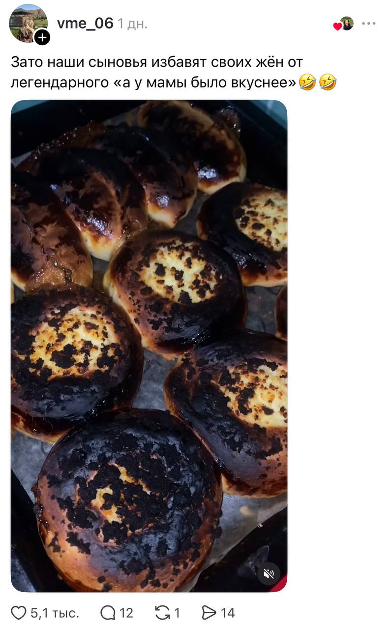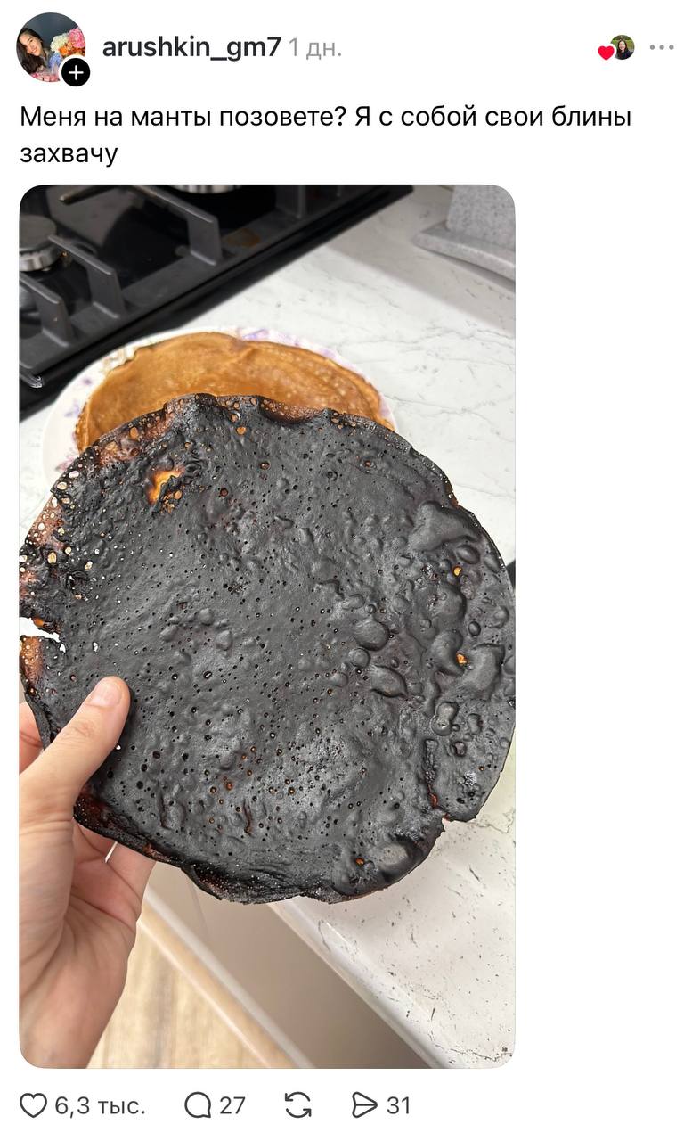 Новый тренд в соцсетях: пользователи показывают свои кулинарные неудачи. Подгоревшие блины, выкипевший до черноты компот, разлезшиеся манты, тесто, «выплюнувшее» сосиски — чего только нет в подборке гастрономического «не получилось».