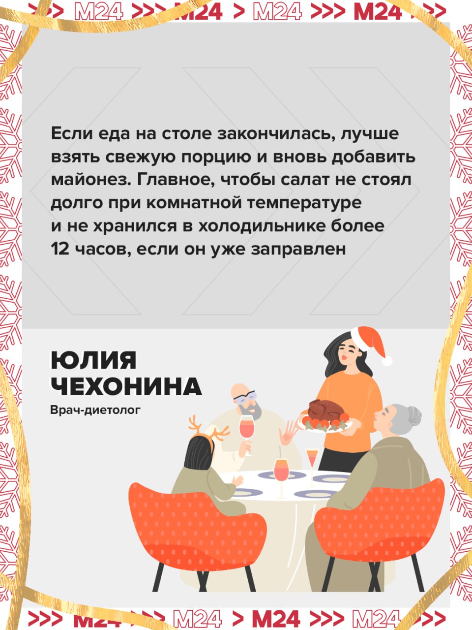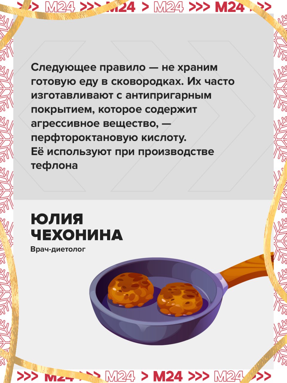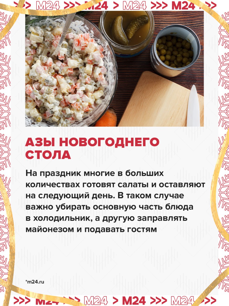 Убираем ложки из готовых салатов и не храним еду в сковородках. Главная новогодняя инструкция от врача-диетолога — в карточках.
