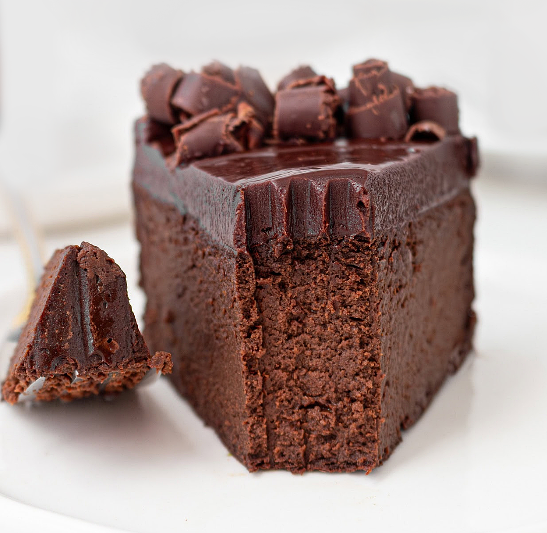 5. После выпекания охладить. Для шоколадного крема: нагреть кокосовое молоко почти до кипения и добавить шоколад. Через минуту перемешать, пока масса не станет гладкой, и равномерно распределить на охлажденном кексе. При желании украсить по своему усмотрению.