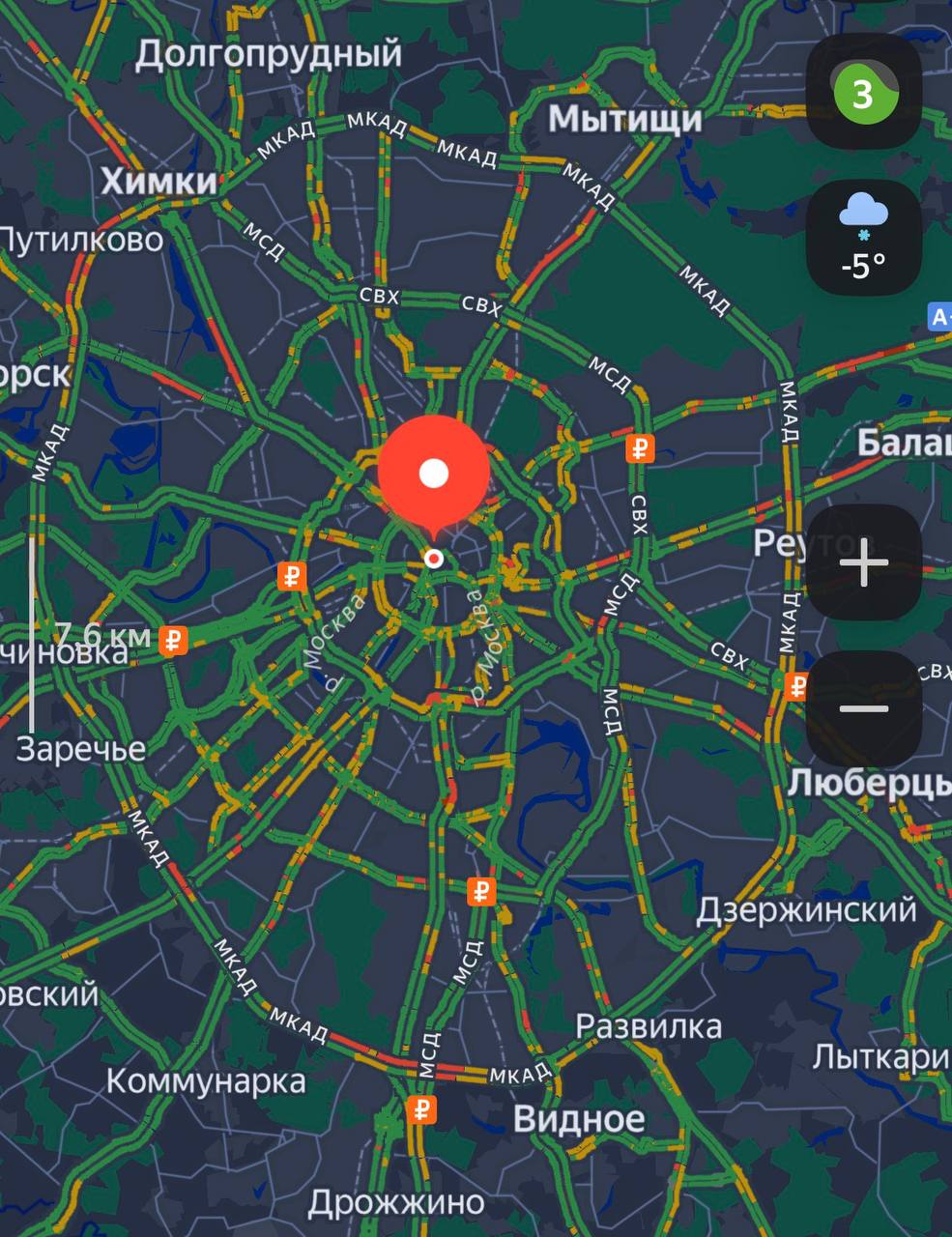 Днём могут быть локальные затруднения в центральной части города, на Садовом кольце, ТТК и вблизи крупных торговых центров.