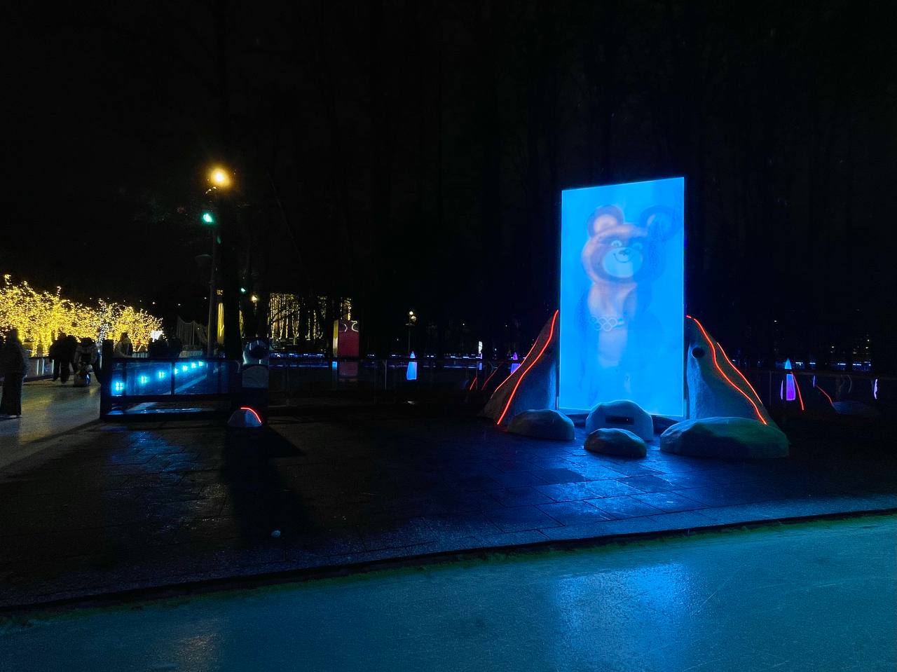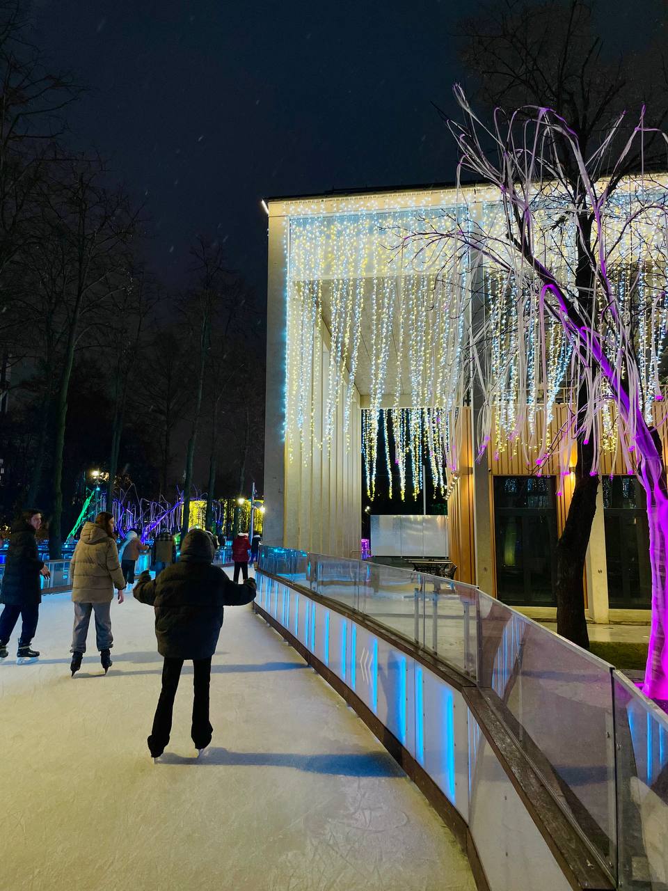 Здесь вы не просто покатаетесь на льду, а сможете увидеть целое представление со световыми эффектами и тематическими фотозонами, уютными местами для отдыха и тематическими проекциями на фасаде стадиона.