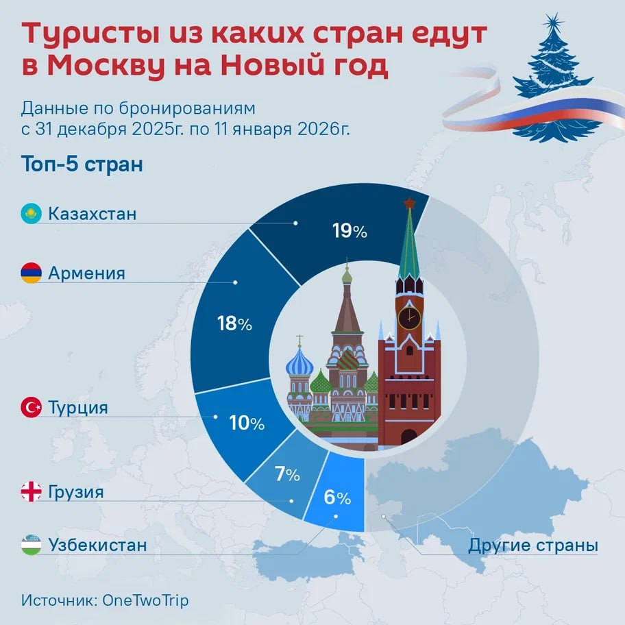 Туристы из каких стран планируют посетить Москву на новогодних каникулах — в графике @SputnikLive.