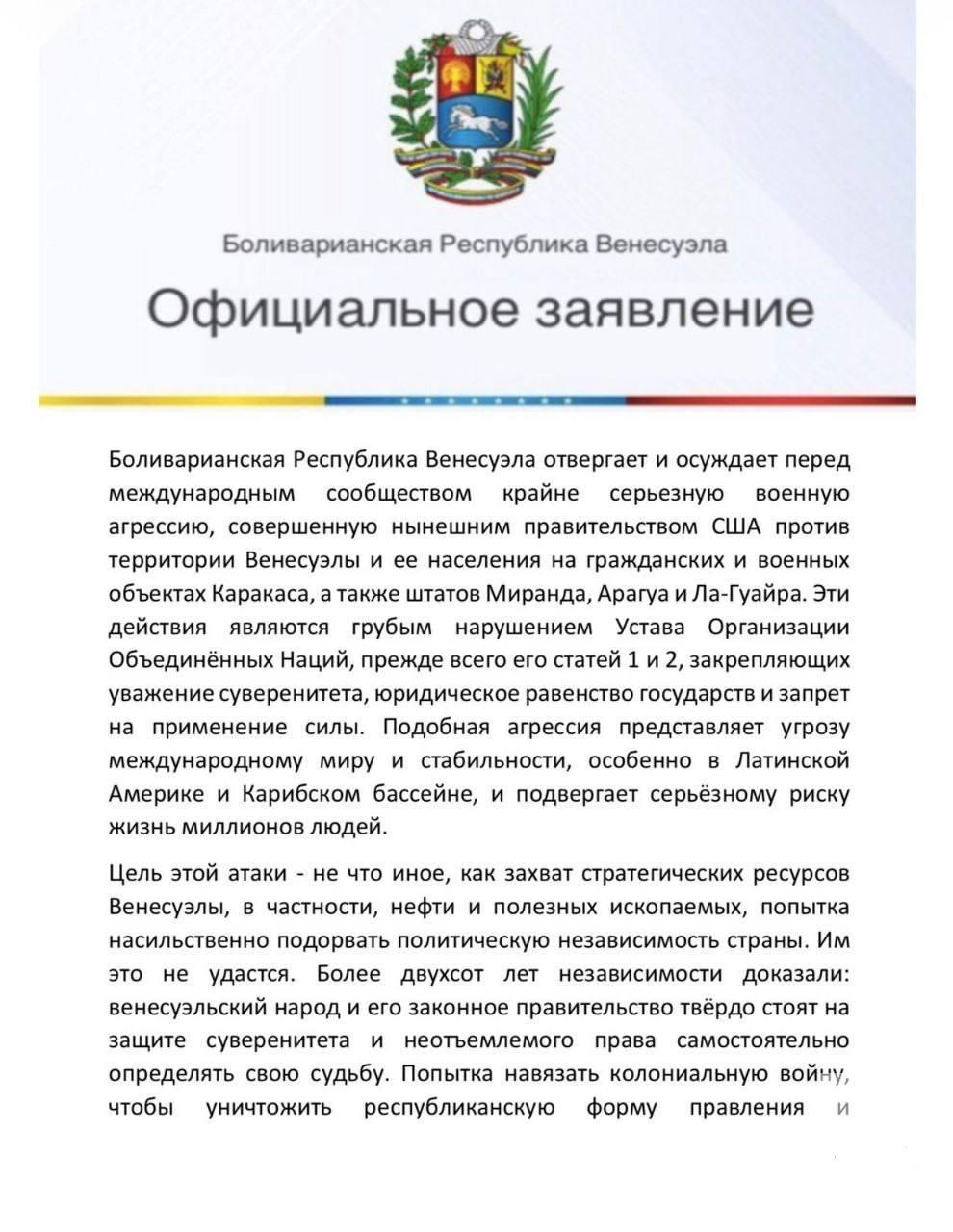 Посольство Венесуэлы в РФ: США грубо нарушили Устав ООН.