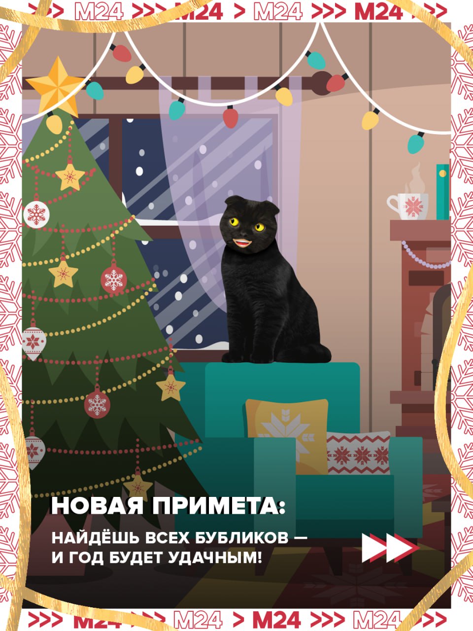 Открывайте карточки, ловите новогоднее настроение от праздничного декора и ищите нашего хвостатого маскота.