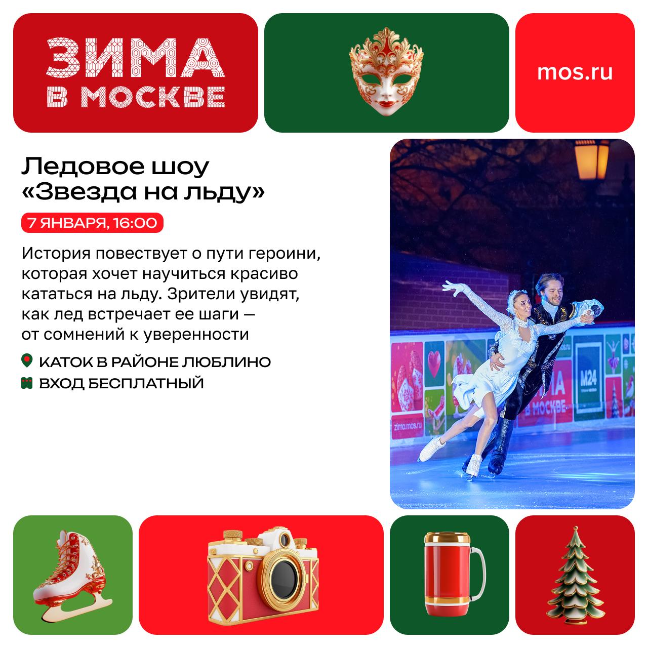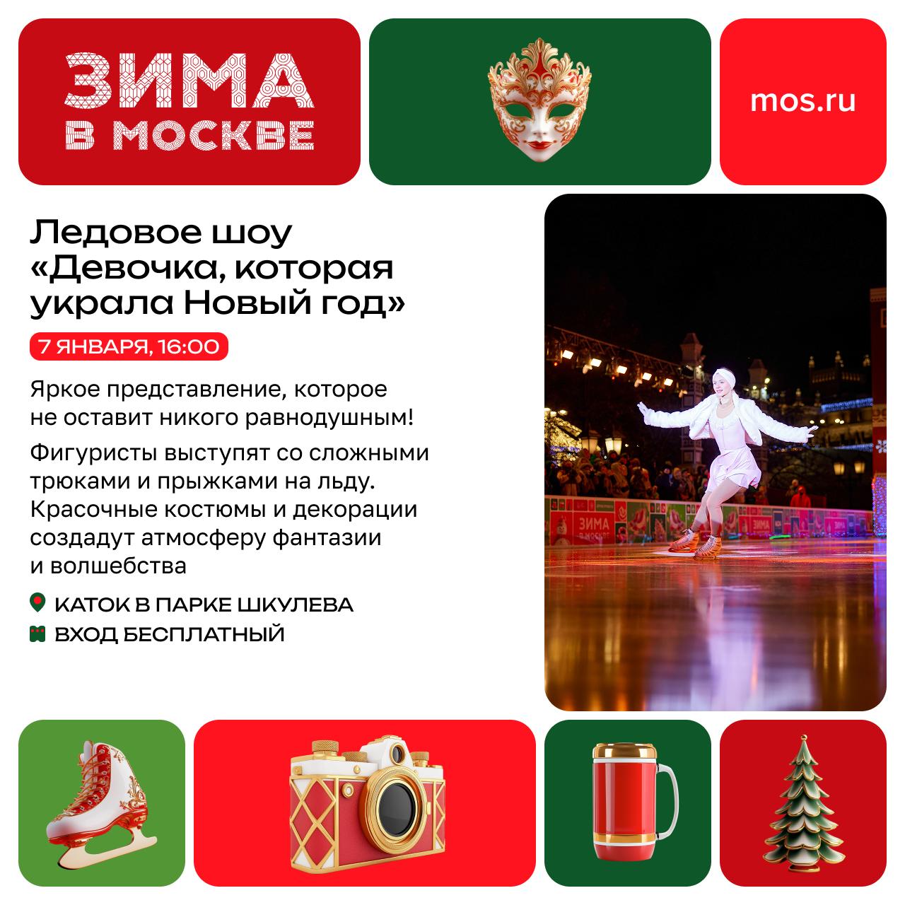 На городских катках проходят ледовые шоу. Вас ждут трогательные истории и впечатляющие номера.