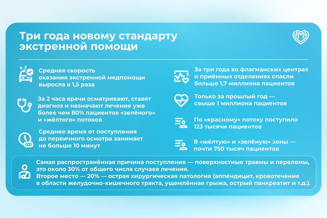 В результате работы по такому стандарту было спасено более 1,7 миллиона пациентов, только за прошлый год — свыше миллиона горожан.