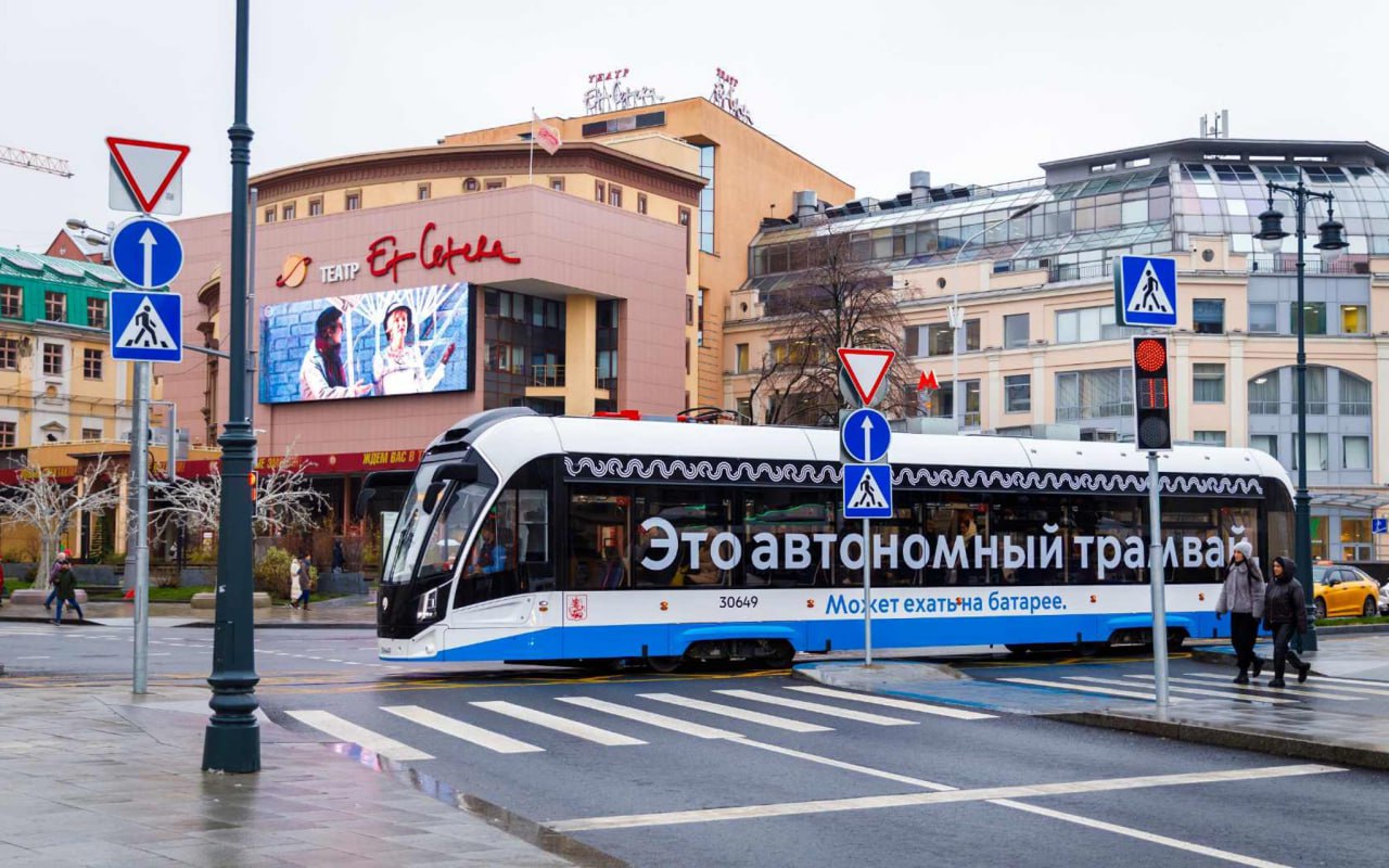 В сентябре заработал первый в России участок путей бесконтактной сети и впервые поехал полностью беспилотный трамвай по маршруту № 10 в Строгино