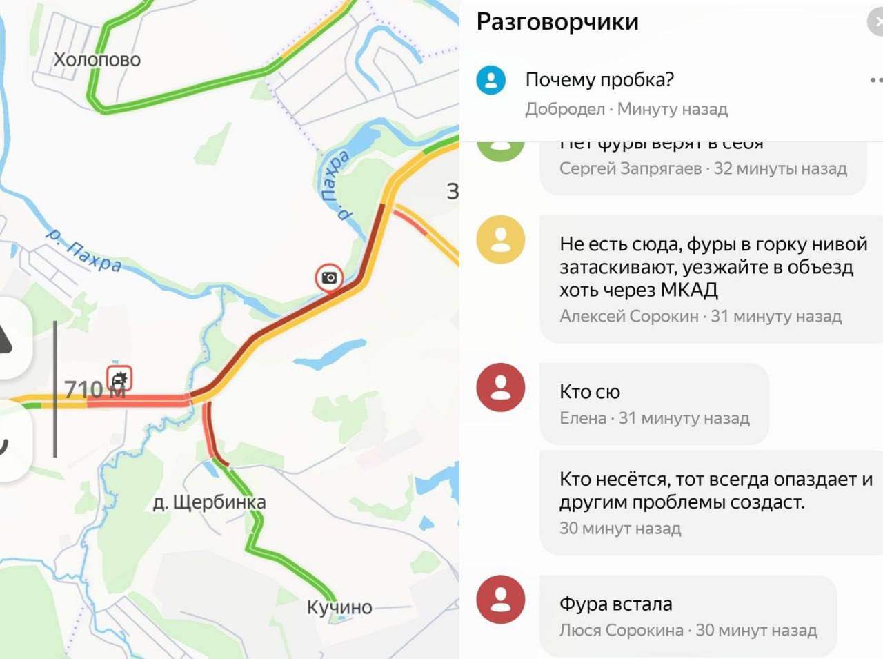 На Домодедовском шоссе большая пробка. По информации очевидцев, из-за мощного снегопада фуры буксуют в горку.