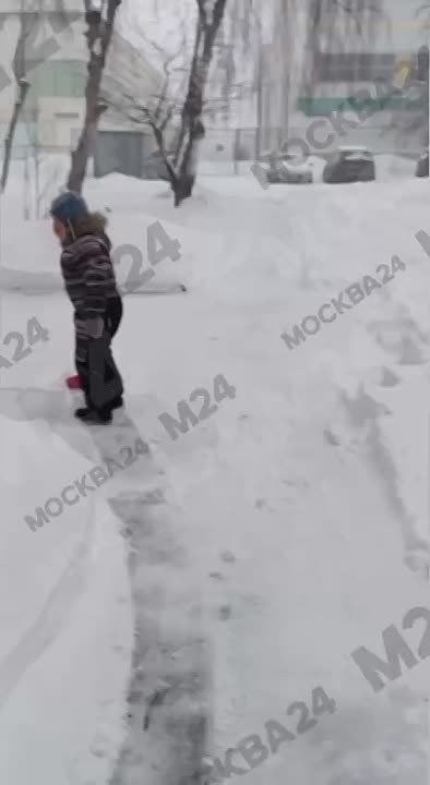 Самый юный помощник живет в Востряковском проезде. С самого утра Рома помогает коммунальщикам чистить двор от сугробов.