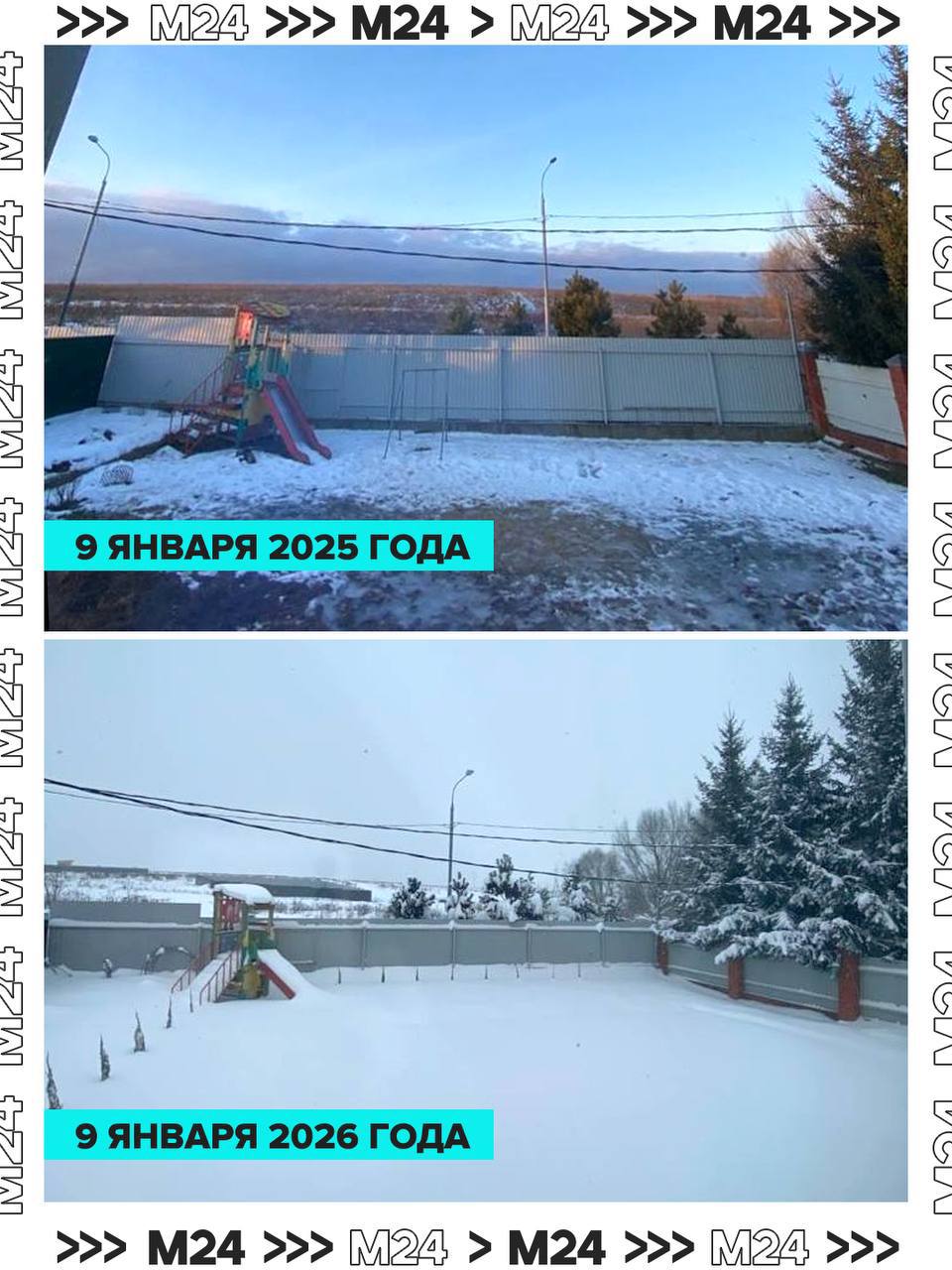 Самое показательное «было/стало». 9 января прошлого года этот двор в Новой Москве выглядел серым и унылым. В этом году за ночь его замело так, что видно лишь верхнюю часть горки.