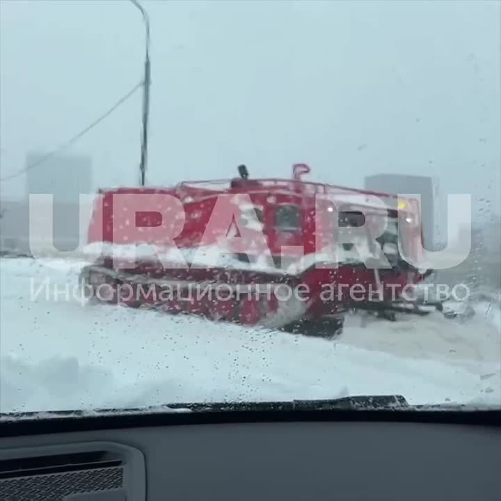 Техника МЧС присоединилась к очистке снега в Москве. Она пытается наладить движение на нескольких участках МКАД.