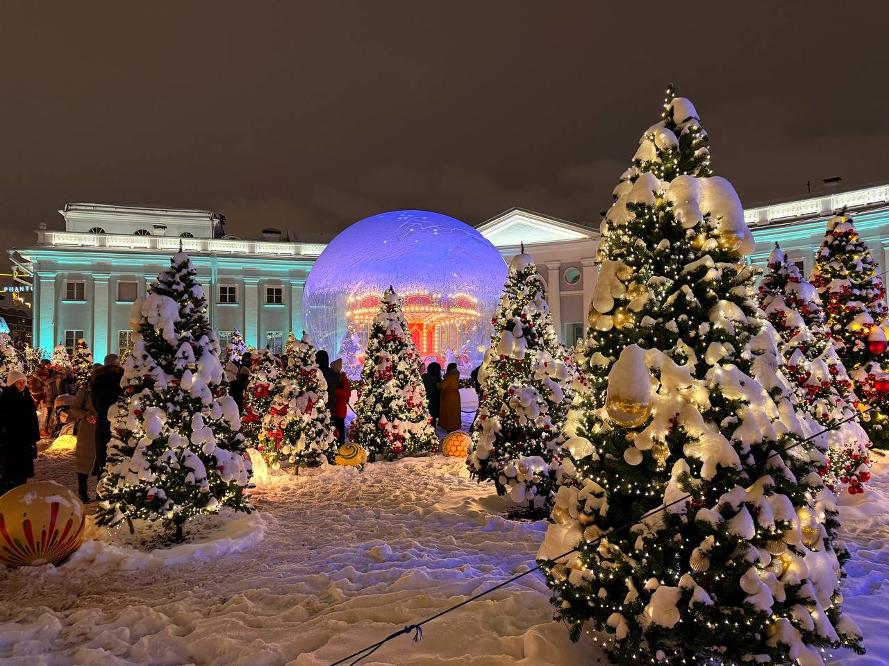 Улицы утопают в миллионах мерцающих гирлянд , на площадях красуются огромные сверкающие ели и волшебные инсталляции, а в парках и скверах царит праздничная атмосфера.