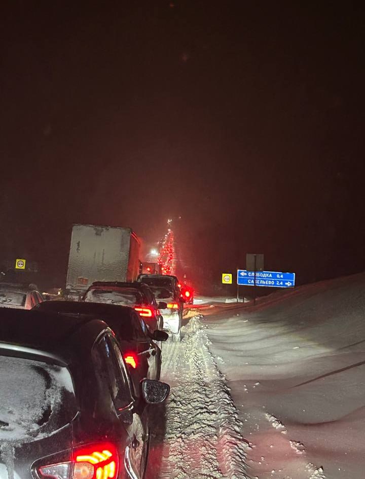 Многокилометровая пробка на Ярославском шоссе в сторону Москвы — водители не могут попасть в столицу и стоят на дороге более 6 часов из-за снегопада.