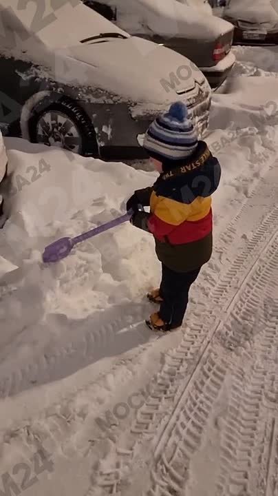 Папа — лучший! Сегодня маленькие москвичи внесли свой большой вклад в борьбу с последствиями снегопада.