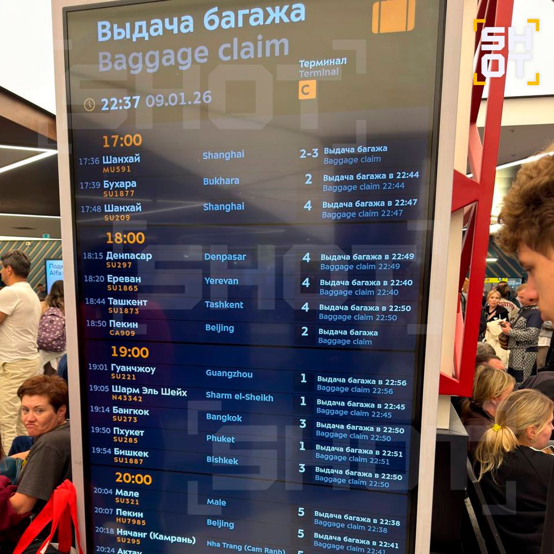 Одна из туристок рассказала SHOT, что недавно прилетела из Омана в воздушную гавань и увидела сотни толпящихся людей, которые ждут свои чемоданы. Прилетевшие в 17:00 получают багаж только сейчас — примерная задержка около 5-6 часов. Среди пассажиров, ожидающих свои сумки, есть семьи с детьми.