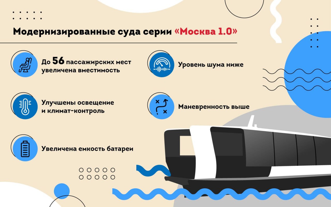 В 2025 году флот пополнился 10 модернизированными судами, а в 2026 году ожидается поставка 8 новых электросудов. На верфи в Нагатинском затоне уже начато производство инновационных электрических судов — всего будет построено около 40