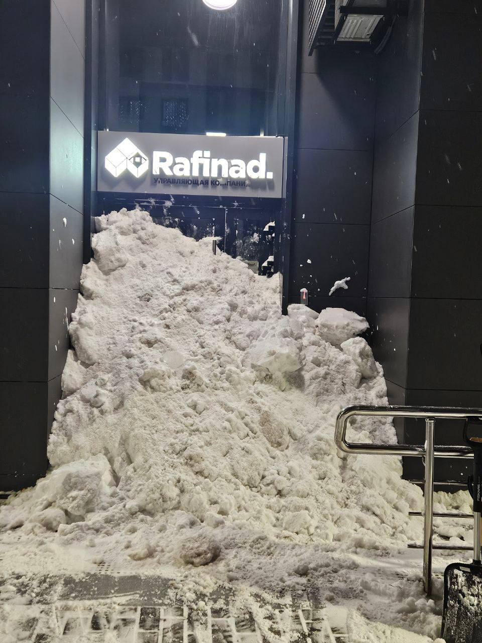 Впрочем, сотрудникам одного из ЖК тоже придётся самостоятельно откапываться: жители завалили им дверь офиса. Такой подход может стать популярным, если те, от кого зависит порядок, будут сидеть сложа руки.