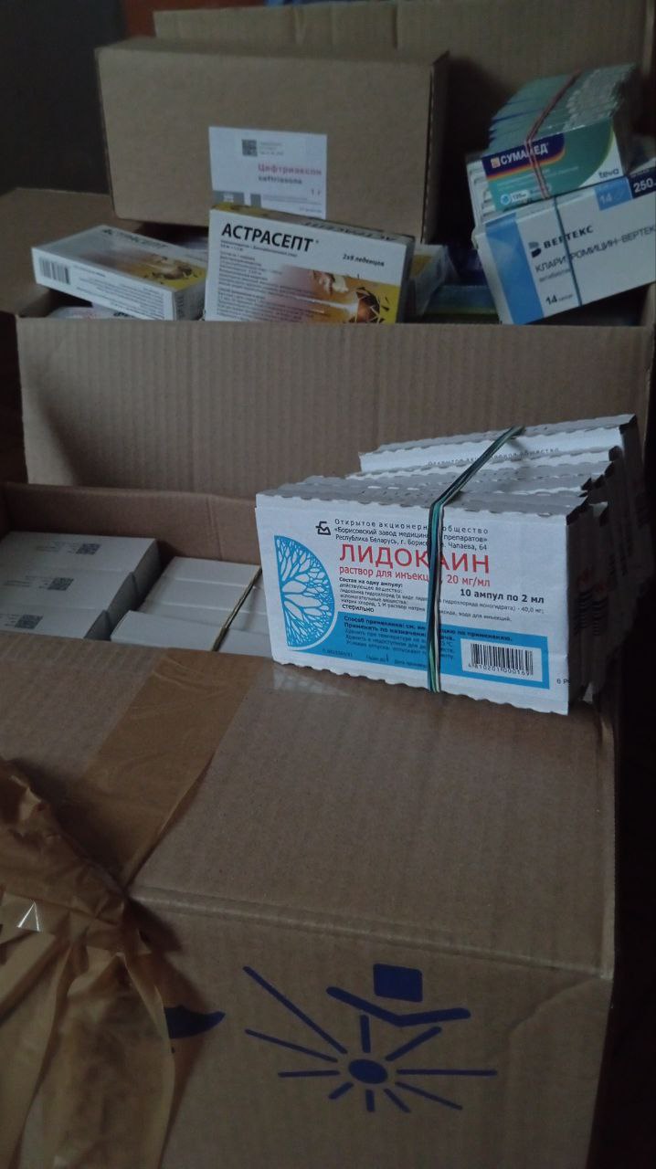 Юлия Витязева и БФ "Помогаем нашим" подготовила еще три коробки с противовирусными препаратами, антибиотиками, НСПВ-мазями и витаминами.