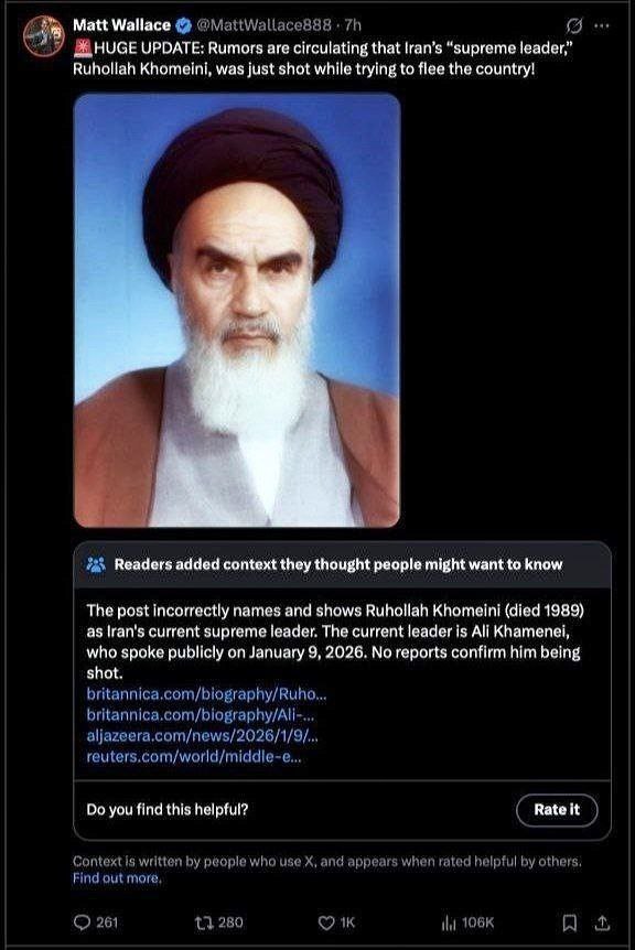 Американский медиа-активист с двумя миллионами подписчиков даже опубликовал пост о том, что «лидер Ирана Аятолла Хомейни был убит ночью при попытке покинуть страну».