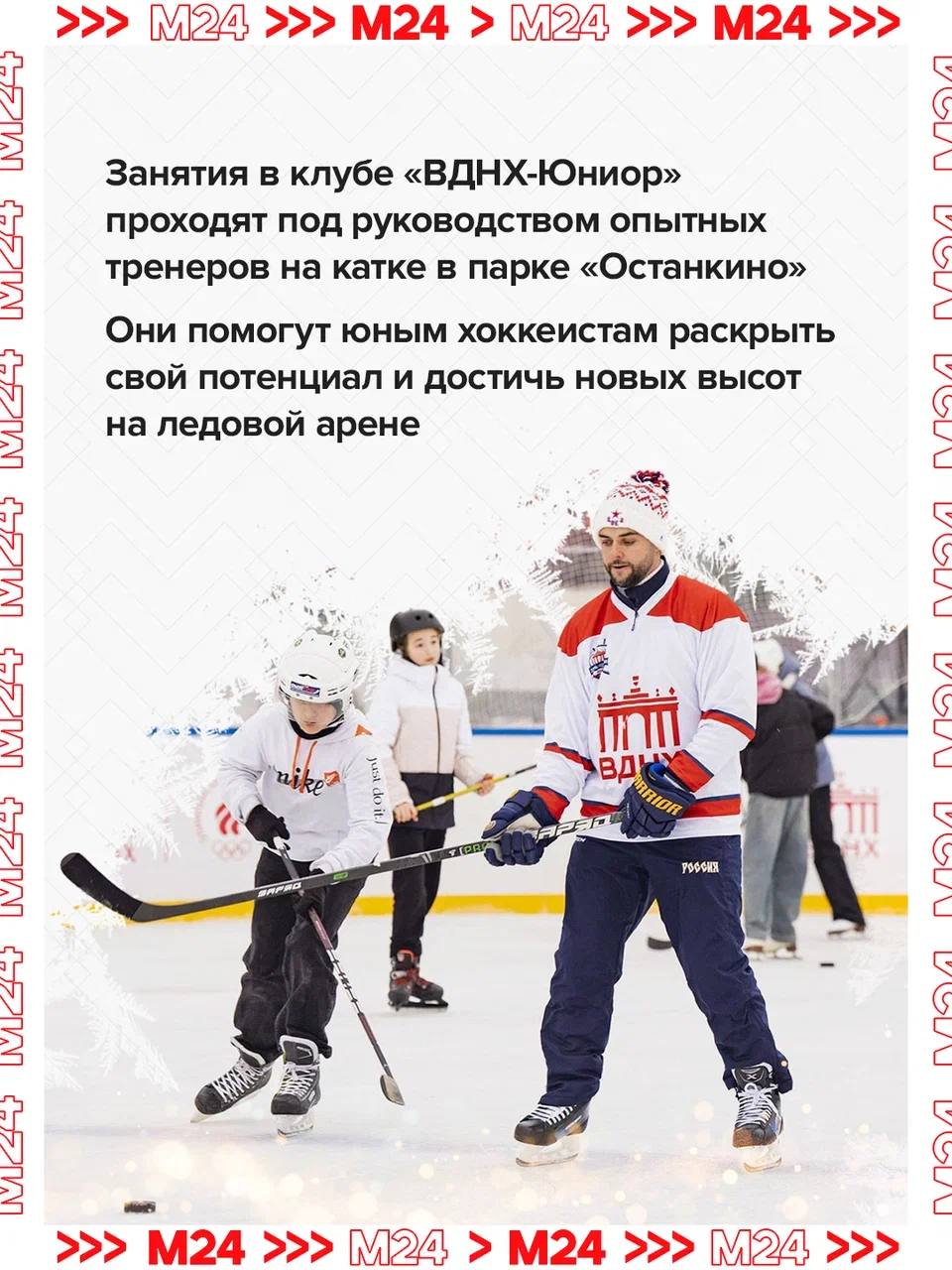 Кататься на коньках, владеть клюшкой и добиваться поставленной цели: юных гостей ВДНХ приглашают на тренировки по хоккею клуба «ВДНХ-Юниор».