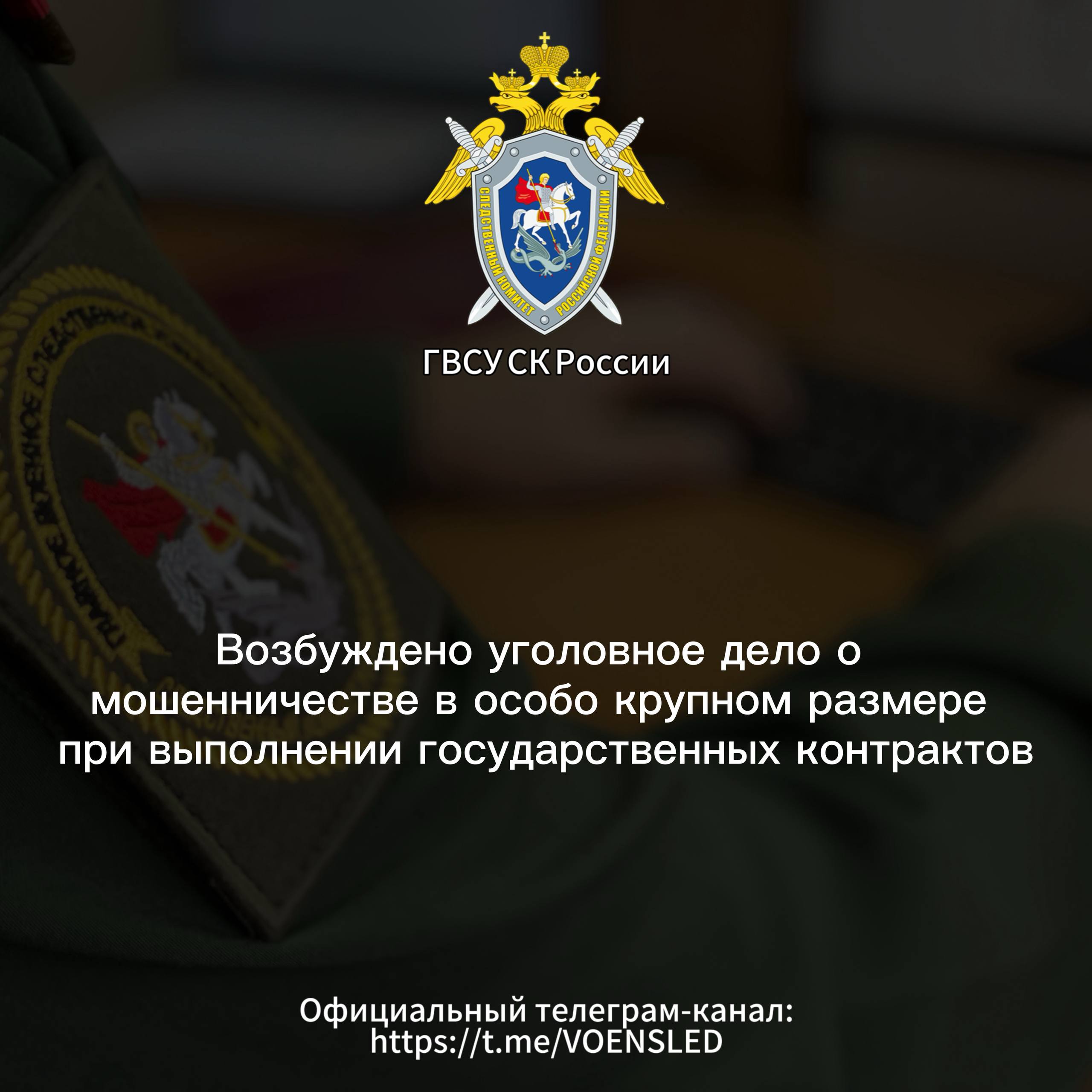 В Москве военными следственными органами Следственного комитета Российской Федерации возбуждено уголовное дело в отношении генерального директора ООО «Титан» Халида Керимова и иных участников организованной группы, подозреваемых в совершении мошенничества в особо крупном размере при выполнении государственных контрактов (ч. 4 ст. 159 УК РФ).