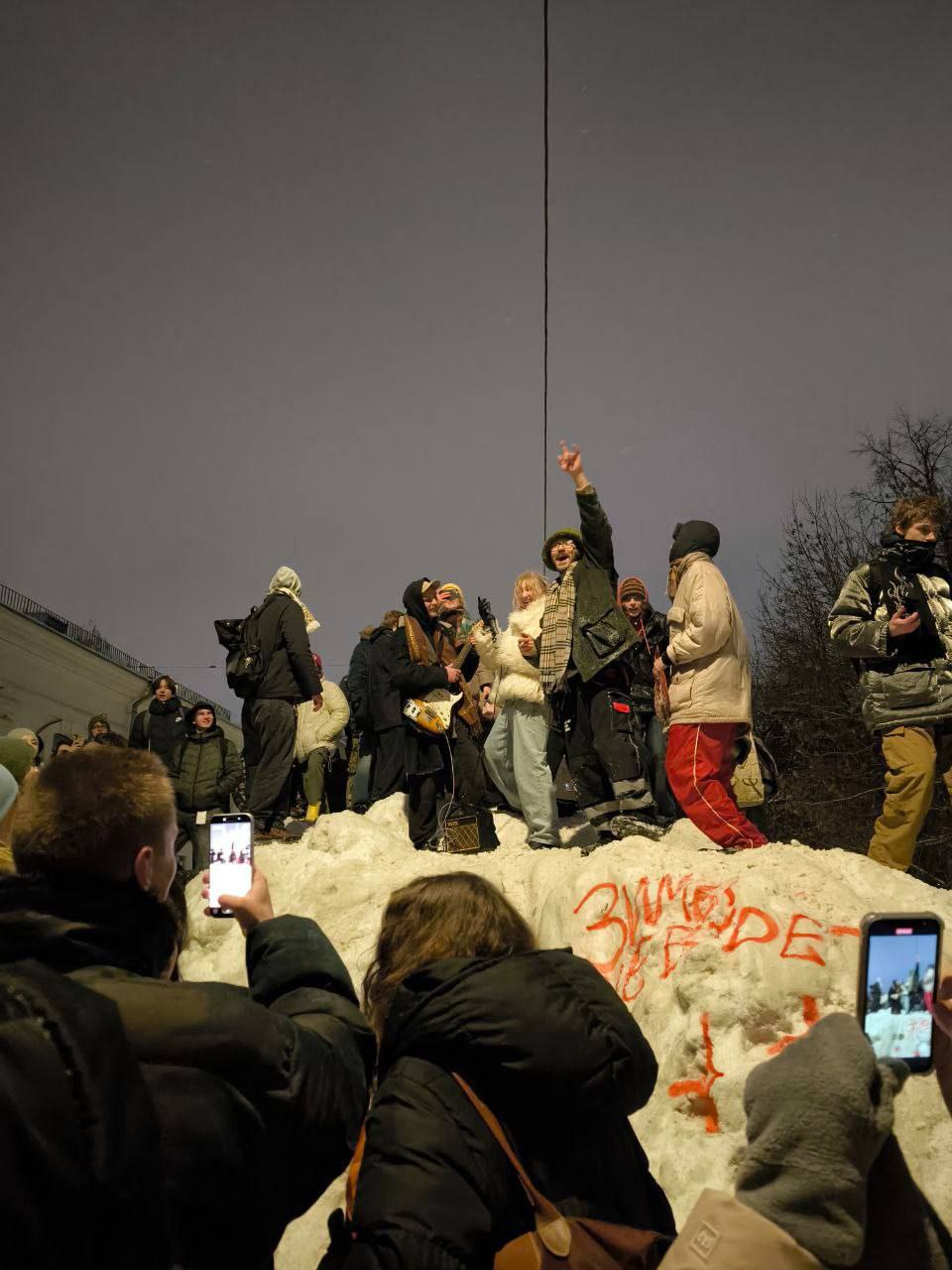 Образовавшаяся после уборки снежных заносов гора на Миусской площади стала притягивать жителей и гостей столицы: на нее несколько дней подряд ходят фотографироваться и тусоваться, накануне попытались провести концерт — но через полчаса вечеринку разогнала полиция.