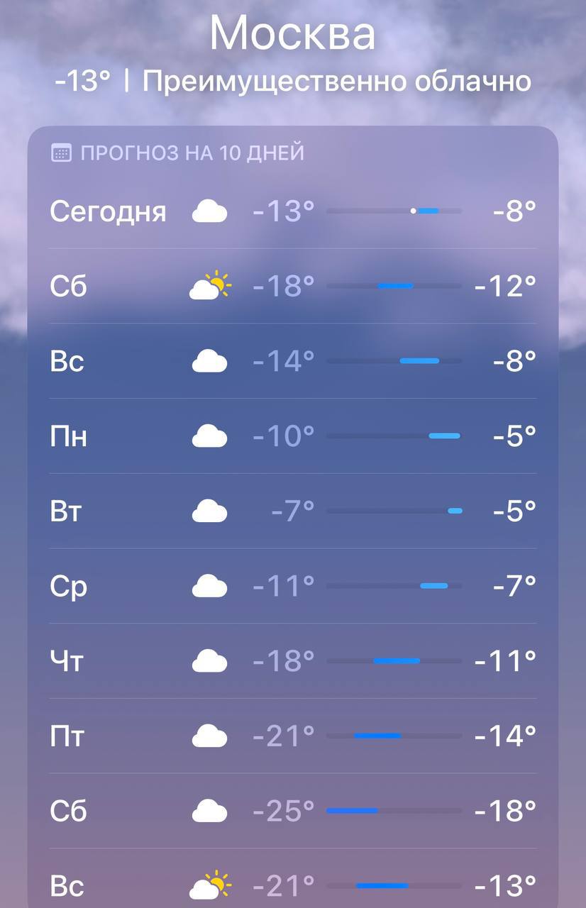Прошедшая ночь в Москве стала самой холодной в 2026 году, минимальная температура составила минус 12,1 градуса. А уже на следующей неделе температура опустится в два раза ниже - в столице ожидается до минус 25.