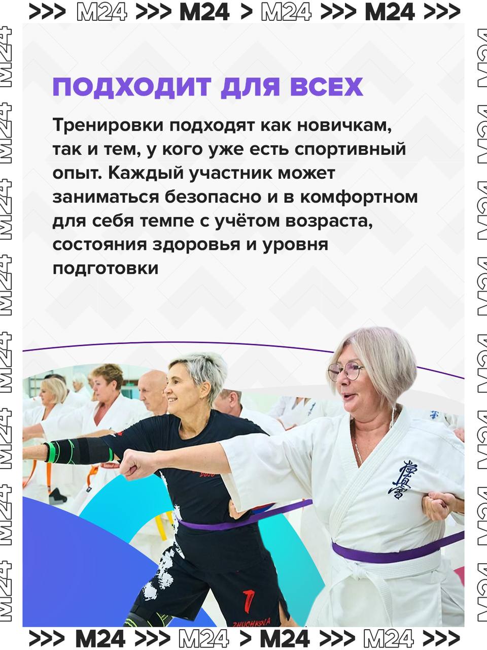 В рамках «Московского долголетия» группы по единоборствам открыты на базе организаций-партнёров проекта. Занятия ведут профессиональные тренеры.