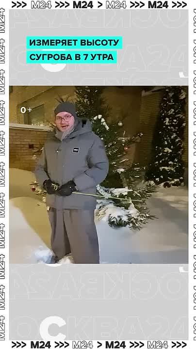 Наш Володя Баклан полез в сугроб по просьбе ведущего Егора Бедули, чтобы измерить высоту московских сугробов.
