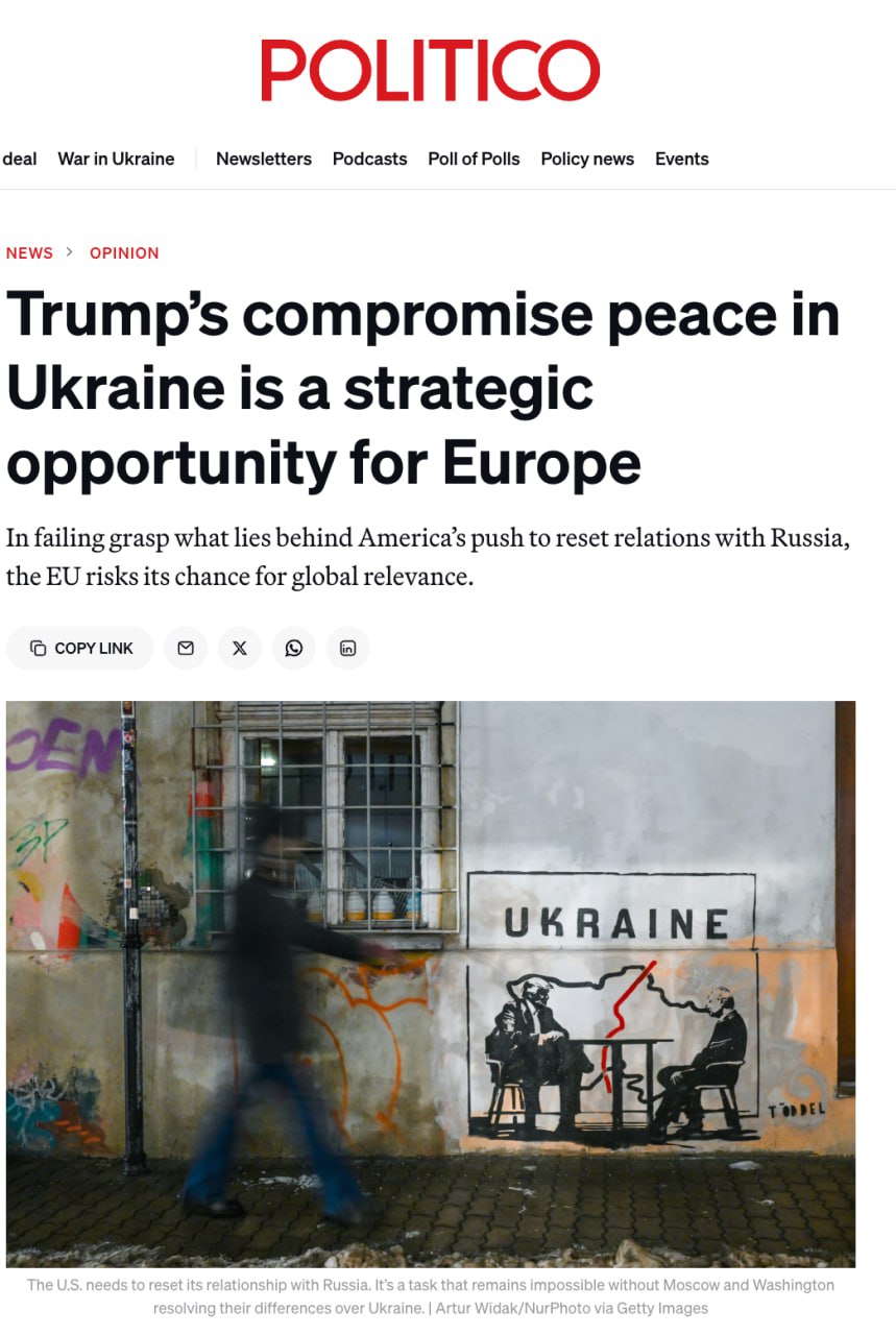 «Однако реакция Европы на украинскую инициативу Трампа во многом оказалась неспособной увидеть картину в целом.Слишком часто ЕС пытался встроить в переговоры «ядовитые пилюли», пересекая красные линии России — например, в виде предложения «Коалиции желающих» разместить сдерживающий контингент на украинской территории. Возможно, это связано с тем, что после десятилетий утверждений о том, что Россия не имеет права голоса в вопросе безопасности государства у своих границ, компромиссное соглашение по этому пункту слишком трудно принять. А возможно, более цинично, речь идёт о попытке выиграть время для наращивания военного потенциала Европы и отсрочить момент, когда придётся оплачивать счёт за восстановление Украины.