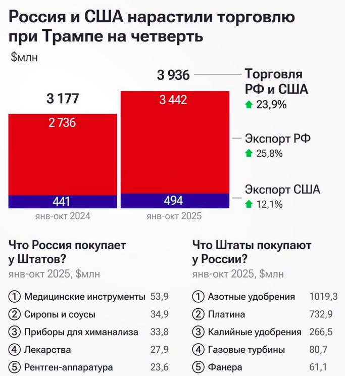 Россия и США нарастили торговлю при Трампе почти на 25%.