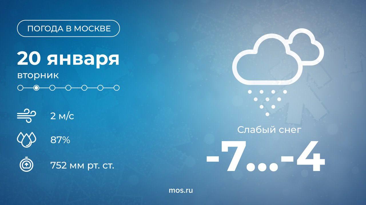Доброе утро! Сегодня в столице будет пасмурно, в течение дня возможен небольшой снег. Столбики термометров покажут от 7 до 4 °С.