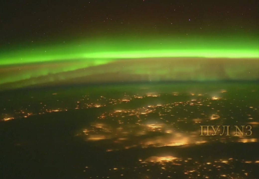 На кадрах можно увидеть закат над Норвегией, огни Санкт-Петербурга, Москвы и других крупных городов, над которыми танцуют зеленые сполохи полярного сияния»