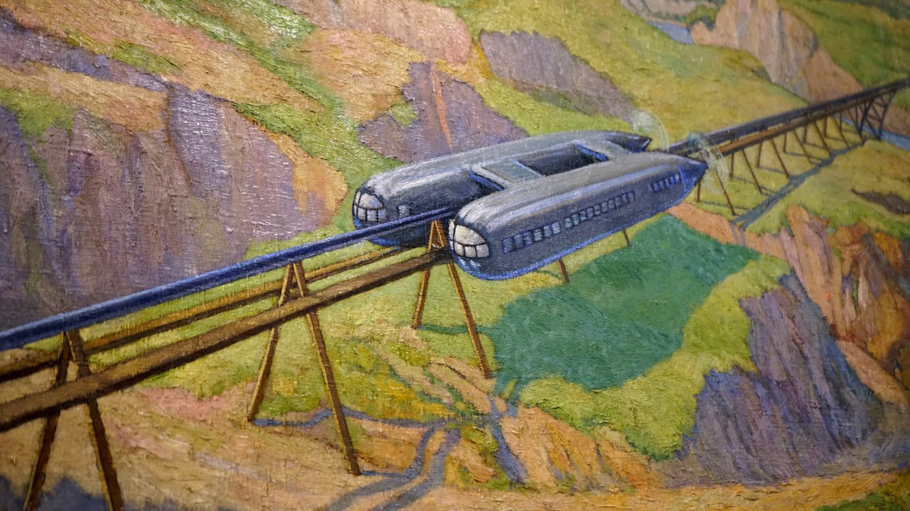Модель шаропоезда, в котором вместо привычных колесных пар использовались шары. Автор проекта молодой советский инженер Николай Ярмольчук рассчитывал, что состав сможет развивать скорость до 300 км/ч. Вагоны должны были двигаться не по рельсам, а по бетонному жёлобу.