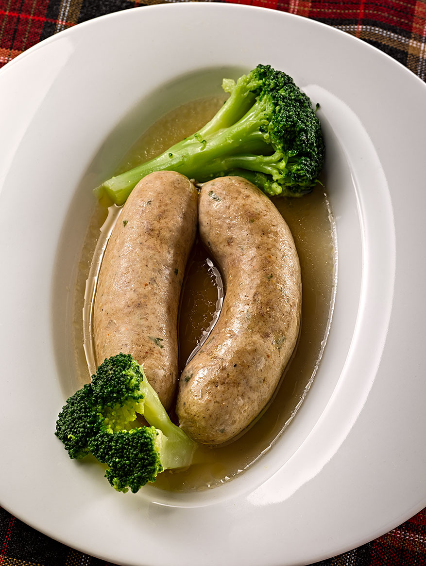 Для достижения наилучшего результата сосиски помещаются в вакуумный пакет вместе с кубиками льда, а затем в специальный термостат, где они прогреваются до 70°C в течение 40-45 минут. В результате получается прозрачный бульон, который дополнительно подчеркивает вкус сосисок.