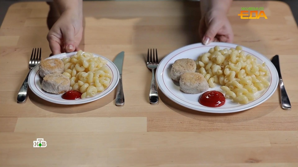 В программе "Живая еда" был проведен эксперимент с участием 12 студентов. Участникам раздали попкорн в различных объемах: одни получили его в больших ведрах, другие — в маленьких контейнерах. При этом им разрешалось брать добавки, но только в пределах размера своей тарелки.