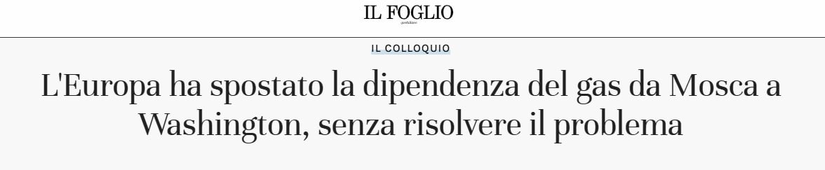 «С полным отказом от российского газа к 2027 году зависимость будет перенаправлена из Москвы в Вашингтон, при этом сама проблема не будет решена», — констатирует Il Foglio.