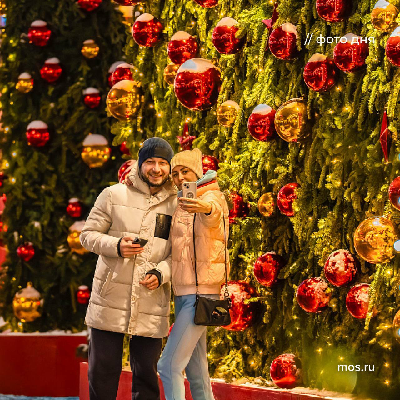 Новый Арбат к зиме оформили как галерею. Четная сторона улицы стала улицей подарков. Конструкции украшены бархатными бантами, а на крышах размещены ретроавтомобили и большие игрушки.